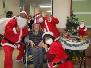 沢山のサンタがクリスマスケーキ持って尚古園へ